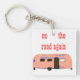 A fun peachy pink vintage style mobile home makes a fun on the road again keychain.