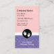 Mobile massage business card tmplate including massage hands, pink purple and white background and text templates you can customise online.