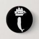Moby Dick Rising button. A minimalist vector design featuring a silhouette of a sperm whale charging a whaling ship. The design is based off the specs for the whale ship Essex, the sinking of which inspired Herman Melville to write Moby Dick. A sharp design for anyone who loves Moby Dick, Herman Melville, and American literature.