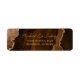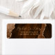 This elegant modern wedding invitation return address label features a mocha brown watercolor agate background trimmed with faux gold glitter. The customizable text combines gold-colored handwriting script and copperplate fonts.