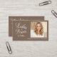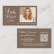 Mocha Brown Script Photo QR Code Lashes and Brows Business Card