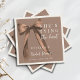 She’s Tying the Knot Personalised Bridal Shower Napkins | Elegant Mocha Brown Bow Custom Cocktail Napkins | Modern Classic Neutral Bridal Shower Decor