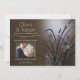 Rustic Nature Photo Engagement - Your photo with this soft mocha brown theme, a soft glow behind a pretty display of cattails and grasses with sparkly dragonflies glistening in the glow - the back is a coordinating colour easy to customise template - original artwork by WhimsicalArtwork™ for theBarefootBride ™. This is part of a complete wedding stationery suite, as well as Baby Shower, Birthday and Christening Invitations. For question or assistance please contact designer indy.designer@yahoo.com.