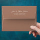 © Socialite Designs. Add a touch of timeless elegance to your wedding stationery or correspondence with this customisable mocha envelope. Featuring a mid brown mocha tone and a classic design, the envelope includes a customisable return address printed gracefully on the back flap. Perfect for weddings, bridal showers, baby announcements, or any stylish event that deserves attention to detail. Whether you're sending heartfelt letters or formal invitations, this envelope elevates your message with warmth and sophistication.
