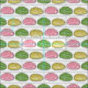 Fabric design features an original marker illustration of a row of colourful Japanese mochi rice cakes, a popular food in Japan, often associated with New Year's celebrations.