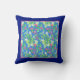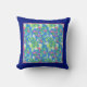 A very pretty Pillow or Cushion with a pattern of creamy white Mock Orange and bright pink Weigelia with a wide, dark blue border, from a handpainted watercolour design by Judy Adamson.