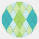 Preppy argyle pattern in teal, light blue and spring green with black contrasting "stitches" on a pale green background.