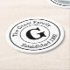 Mod Black and White Personalised Monogram Family Round Paper Coaster