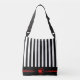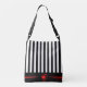 Mod Black & White Stripes with Bright Red Heart Crossbody Bag