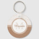 Give your personal style a girly contemporary look with this trendy light brown and white keychain with a mod circle polka dot pattern. Any modern girl would love to have her name and monogram initial personalised on this preppy and modern design.