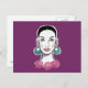 A stylish model wearing oversized retro earrings give a bold look to this girly design.