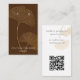 Modern earring display card features gold gingko leaf illustration on dark brown background with white contemporary text on front, and grey text with customisable QR code for your website or social media on back.
