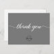 In these uncertain times, it's essential to show appreciation for the support you receive, and this postcard is designed to do just that. The modern grey background sets a sophisticated tone, while the printed modern "thank you" script with long-tailed embellishments adds a touch of elegance and charm.