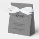 The design features a modern script font that beautifully showcases the word "Love". The mod grey colour adds a touch of elegance and sophistication, while the black text provides a bold contrast. The white bow adds a final touch of charm to the overall look of the favour box.