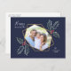 Unique and modern holiday photo postcard featuring a modern geometric (faux) gold foil frame with our watercolor holly berries and leaves.. All text is customisable. Add an additional photo to the back and your custom message.