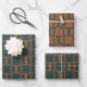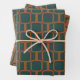 Mod Links Geometric Patterns in Rust and Blue Wrapping Paper Sheet