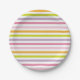Matching seamlessly with the Mod Mama baby shower suite, this paper appetizer or cake plate design features bright, cheerfully coloured stripes to give your modern baby girl's shower party decor a cohesive look without being too matchy-matchy.