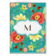 This is a matching Monogrammed Greeting Card to match the wedding invitation set of the same name. COLOR PALETTE: turquoise, teal blue, coral, red, yellow, orange and lime green with a touch of chocolate brown. DESIGN COLLECTION: Matching Thank You Notes, Note Cards. Created from original watercolor hand painted artwork by Audrey Jeanne Roberts, this modern imaginative floral design has a trendy combination of colours. Ranunculus, circle shaped flowers with various whimsical, cute, stylistically rendered flower elements are tossed over the background colour. Some resemble wild roses, berries and daisies with fern style leaves. A bracket style frame has polka dots and a calligraphy swirl type border. There is a wide range of colour combinations available with this pattern.