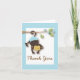 Trendy little baby boy monkey in a cute diaper of blue makes a very sweet thank you card for the mum-to-be or new mum. Coordinates perfectly with our baby shower invitations too.
