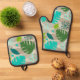 Mod Monstera Leaf Abstract Hawaiian Tropical -Cool Oven Mitt & Pot Holder Set