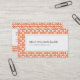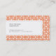 A poppy, mod orange clover pattern fills the background of this unique business card template for an eye-catching design. A white box outlined in light grey "wraps around" the edge of this card for added uniqueness. © 1201AM DESIGNS