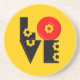 Mod pop puffy floral LOVE square coaster. Background colour can be customised.