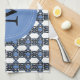 Mod Retro Monogram Blue Abstract Scarab Pattern Tea Towel