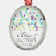 COLOR PALETTE: purple, aqua, ocean, teal, turquoise blue with sage, mint and lime green on a white background. DESIGN COLLECTION: This is a matching Wedding Ornament to match the wedding invitation set of the same name. This modern geometrical pattern design has a cascade of triangles of various hues and colours along with a banner heading and a subtle white and grey ghost of the the triangles running down the page. The text is set in a typographic, typography graphic art font layout. Simple, clean, crisp and elegant for the trendy, chic out of box, anything but ordinary couple. Your text is easily personalised using the easy template fields provided. Several colour combinations are available, contact us if there is a colour palette you would like us to create for you.