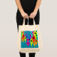 The printing came out very well, better than I had anticipated. The natural color fabric is sturdy with strong seams and comfortable handles. This tote fits easily over my shoulder. As it is filled, the bottom flattens out--very cool! I would buy this product again. This grocery tote holds a lot of groceries! The image quality was very good. The colors were a little darker than I had expected. The darkness may have been due to printing on a natural color fabric rather than on white. The cat design is attractively centered on the tote. The spirit of the design is very lively, just as it appears on the Zazzle website.