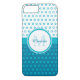 Give your personal style a girly contemporary look with this trendy turquoise blue and white Barely There iPhone 6 Case with a mod circle polka dot pattern. Any modern girl would love to have her name and monogram initial personalised on this preppy and modern design.