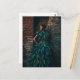 Model in a Green Feather Dress Poses against Brick Postcard