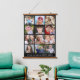 Modern black 12 photo collage hanging tapestry to display your favourite pictures of family, friends, grandchildren, pets, memories, etc. Add your custom text in elegant white typography.