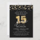 Modern 15 Year Class Reunion Black Gold Streamers Invitation