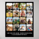 Create your own photo collage poster featuring 16 of your pictures in a modern grid design alongside your favourite inspirational quote or personalised text in simple typography.