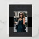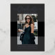 Beautiful 1 photo graduation announcement cards. Featuring modern text with elegant calligraphy script in your choice of gold, silver or rose foil. Your photos are thinly edged in silver grey colour trim for that extra "Pop". The design is complimented with a background in dark platinum and regal black colours. The back of the card offers a personalised announcement text space for that special graduate. To see more items like this, visit my store here at "www.Zazzle.com/LakeViewCardCo". Thanks