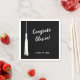 Personalised graduation party napkins with text Congrats and custom graduate's name . Introducing our Graduation Party Collection for the Class of 2024. Elevate your celebration with our minimalist black and white designs, exuding contemporary elegance. Features a symbolic tassel motif, representing the journey of achievement. From sleek invitations that set the tone to striking banners that adorn your venue, every detail reflects modern sophistication. Whether you're hosting an intimate gathering or a grand affair, our collection offers customisable options to suit your style. Celebrate this milestone in the most stylish way possible with our Graduation Party Collection. Congratulations to the Class of 2024!