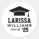 Modern 2025 Black and White Graduation Cap Custom Classic Round Sticker