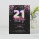 Modern 21st Pink Foil Balloon Fireworks Birthday Invitation