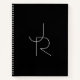 Modern 2 Overlapping Initials | White on Black Notebook