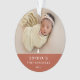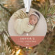 Baby's first Christmas keepsake ornament featuring your favourite newborn 2 photo on terracotta copper and burnt sienna rust orange with white modern text and a Christmas tree element. Makes a loverly gift!!