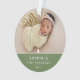 Baby's first Christmas keepsake ornament featuring your favourite newborn 2 photo on avocado green with modern text and a Christmas tree element. Makes a loverly gift!!