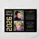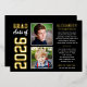 Announce your high school graduate in style with this 2 photo real foil graduation announcement and party invitation. Two-sided "Now and Then" card features two photos of the grad (a current picture and older one from their first day of school) with a simple and masculine design with sports jersey inspired lettering. Black, gold, and white colours.