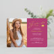 This double sided 2 photo stylish graduation announcement or thank you card with real gold foil, features modern text fused with elegant calligraphy script in gold foil and white on pink. Photos are one on the front and one on the back, perfect for framing. The background can be easily customised to a colour of your choice. To see more items like this, visit my store here at "www.Zazzle.com/LakeViewCardCo". Thanks