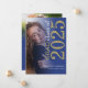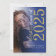 Modern 2 photo Blue Gold 2025 Graduation Announcement. A stylish text and photo design to announce the news of your high school senior class graduate, with stylish large typography rotated and to the right hand side at the top in white and gold. Easily personalise the rest of the text including your message on the back. Replace the photos in the templates on each side with your own.