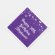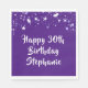Personalised 30th birthday party napkins with purple stars and your own custom message (the sample says HAPPY 30th BIRTHDAY NAME) in a modern handwritten brush script font with purple stars on a purple background. All text is editable to use for another year birthday or other occasion. COLOR CHANGE:  Change the background or text colours by clicking CUSTOMIZE FURTHER. Contact the designer via Zazzle Chat or makeitaboutyoustore@gmail.com if you'd like this design modified or on another product.