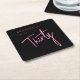 Custom 30th birthday paper coasters with pink script text on black background, perfect for thirtieth birthday party celebrations. Customise with your own name. Colours can be edited in the design tool. Please use the message me button below for help with further customisation and special requests. © Zoe Chapman Design