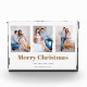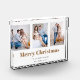 Modern 3 Family Photo Collage Merry Christmas Photo Block. Simply replace the sample images with your own favourites and personalise the text as required. You can change the font type and colour via the customise it further option.