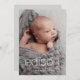 A full-bleed photo birth announcement with large moveable name element in a sleek modern font with birth details below. The back of the card allows for 2 additional newborn photos and parents personal message or additional birth information. All of the elements on this card are customisable so it's easy to create a one of a kind design by swapping out the fonts and colours of text and background colour to meet your specific needs. The back of the card is an ideal place to add siblings photos as well to include them on the exciting announcement of their new brother or sister. This would make a lovely adoption or pregnancy announcement as well.