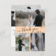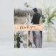 Modern, Elegant, Minimalist Hand Lettered Wedding Photo Collage Thank You Card. Stylish wedding thank you card template featuring three (3) photo on the front and one (1) photo on the back side. With the text "thank you" in a swirly hand lettered typography script font in black on peach yellow, pastel creamy peach colour background. Personalise the custom name and thank you message. If you prefer to handwrite your note, just delete the sample text to make more space. If You need help or matching item, please contact to designer!
