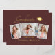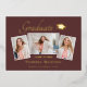 Beautiful 3 photo graduation announcement cards. Featuring modern text with elegant calligraphy script in your choice of gold, silver or rose foil. Your photos are thinly edged in white trim for that extra "Pop". The design is complimented with a background of dusty rose - burgundy. The back of the card offers a personalised announcement text space for that special graduate. To see more items like this, visit my store here at "www.Zazzle.com/LakeViewCardCo". Thanks